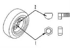 9.在更換輪胎之后,試運轉一下以檢查輪輞螺母(1)是否松動。如需要,則擰緊。